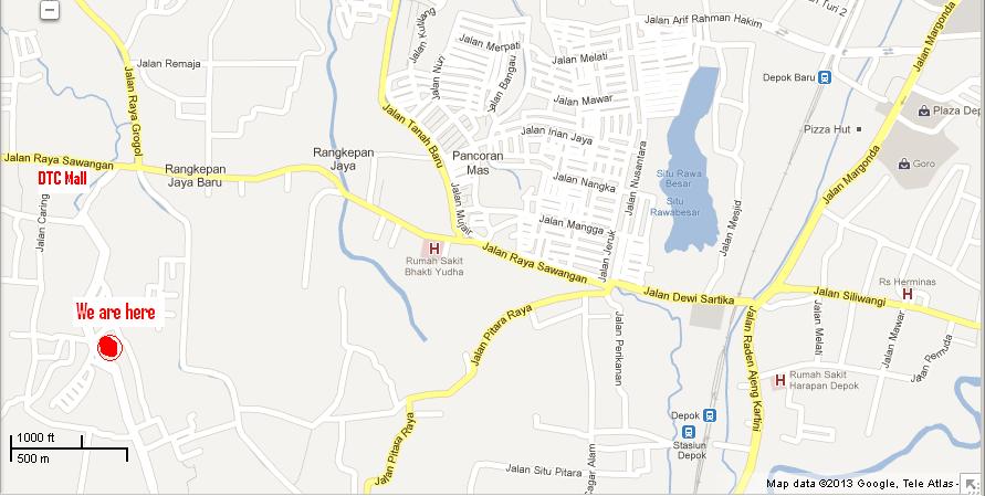 2) Angkutan pribadi – dari Jalan Margonda, melewati Jalan Arief Rahman Hakim, belok kiri ke Jalan Nusantara Raya, lalu belok kanan ke Jalan Sawangan Raya. Lurus hingga +/- 1 km, lalu belok kiri di Mall DTC. Jarak Mall DTC ke Depok Montessori School adalah +/- 200 meter.